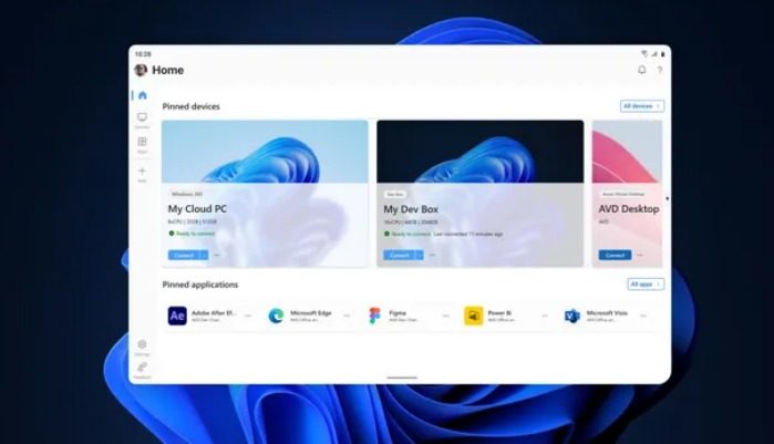La nueva aplicación actúa como una pantalla de inicio personalizable que incorpora todos los servicios actuales de PC en la nube de Microsoft, así como conexiones de escritorio remoto y RDP. Es compatible con configuraciones de varios monitores, resoluciones de pantalla personalizadas, resoluciones y escalado de pantalla dinámicos, redirección de periféricos y más.