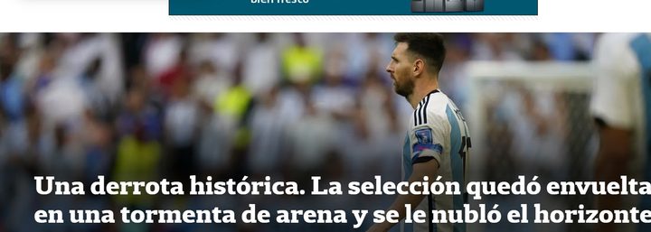Con titulares como: “Golpe Mundial” y “Tormenta del Desierto“, la prensa de Argentina se lamentó con Lionel Messi como telón de fondo en la mayoría de sus portadas.