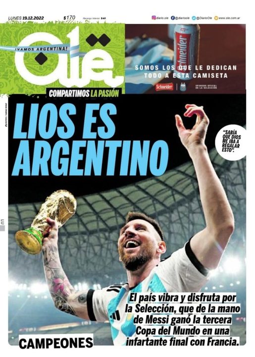 Uno de los textos más emocionantes en ese sentido, es del diario Deportivo Olé de Argentina: