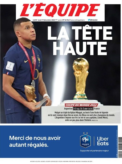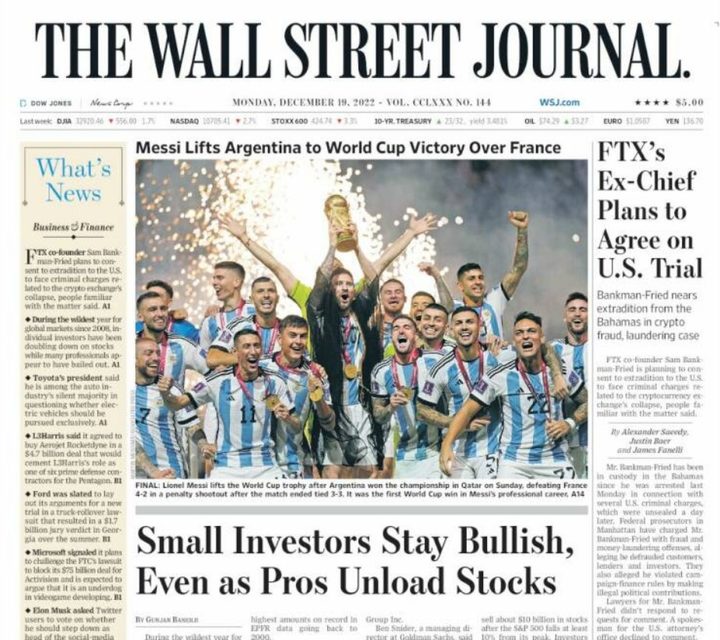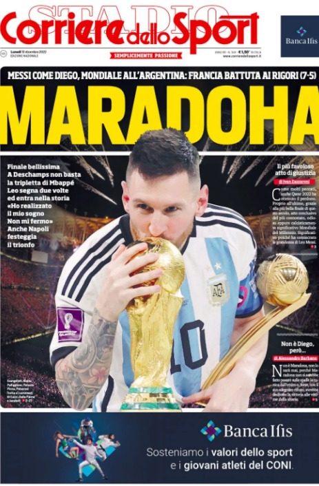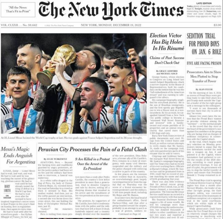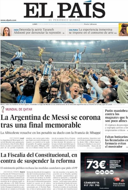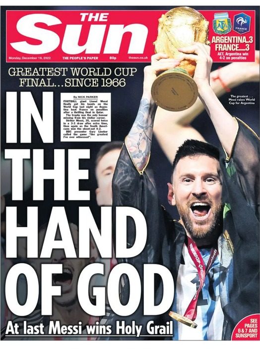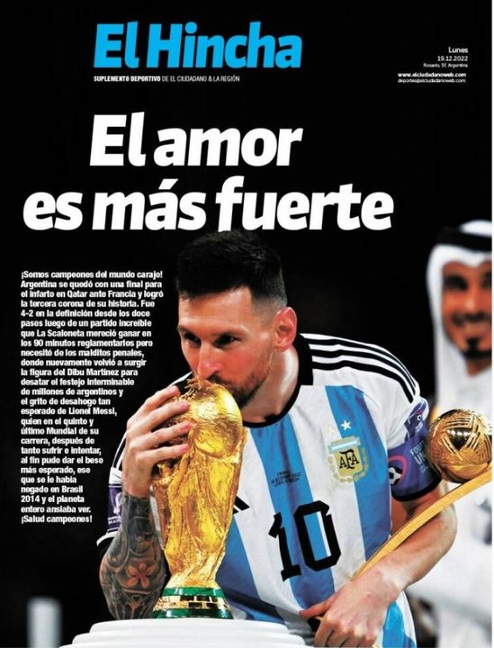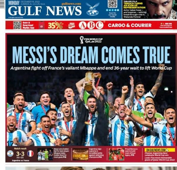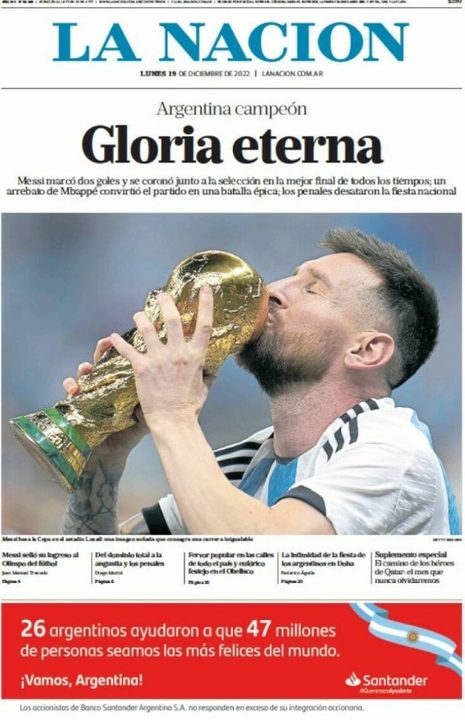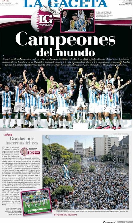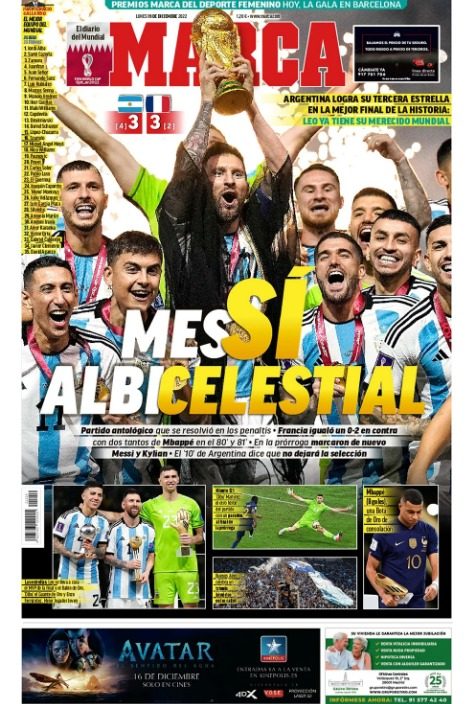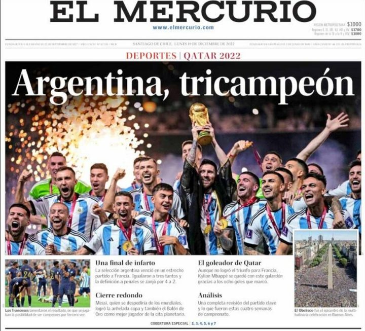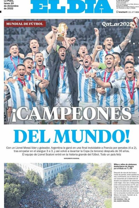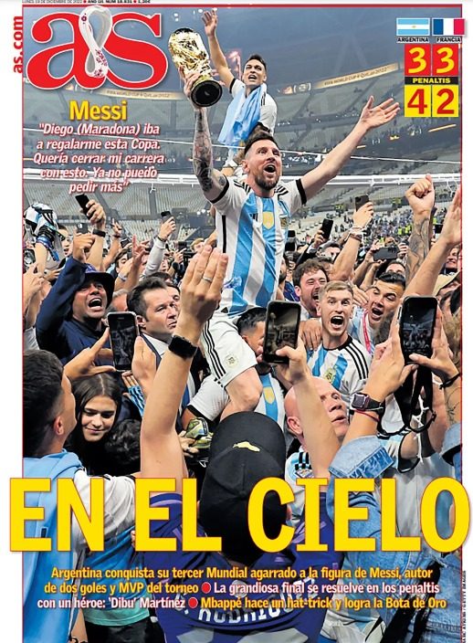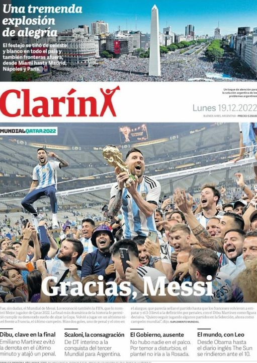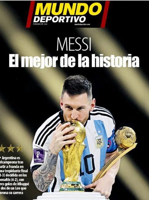 El tercer título mundial de los albicelestes tras vencer en lanzamientos penales a Francia tras un emocionante 3-3 en los 120 minutos de partido, llenó de gloria a los medios del mundo.