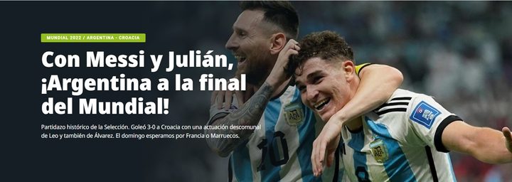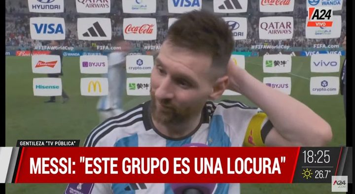 “Pedimos a la gente que confíe porque sabía lo que somos. Este grupo es una locura. Lo hicimos. Se viene una final más. Argentina está en una final del mundo, a disfrutar todo esto. Vamos a dejar todo en la final para llevarnos la Copa”, dijo Messi.