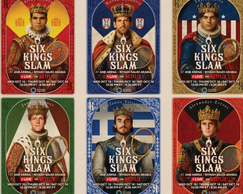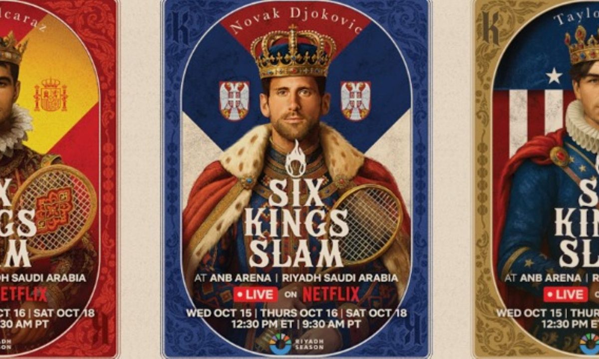 Este 15 de octubre arranca el novedoso torneo Six Kings Slam en vivo por Netflix, Novak Djokovic, Carlos Alcaraz, Jannik Sinner, Stefanos Tsitsipas, Alexander Zverev y Taylor Fritz, juegan desde Riad, Arabia Saudita, hasta el 18 de octubre. Los partidos comienzan a las 9:30 a.m. PT / 12:30 p.m. ET.