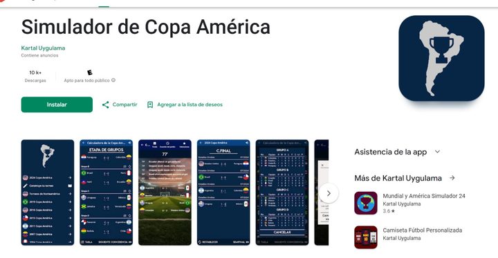 «En esta app puedes simular la Copa América 2024. El torneo de 2024 contará con 10 naciones sudamericanas y 6 naciones norteamericanas. Dado que los play-offs de América del Norte aún no se han jugado, puedes crear el torneo eligiendo los 6 países que quieras. También puedes jugar los torneos de 2021, 2016, 2015, 2011, 2007, 2003, 2001, 1999, 1997, 1995 y 1993 si quieres»