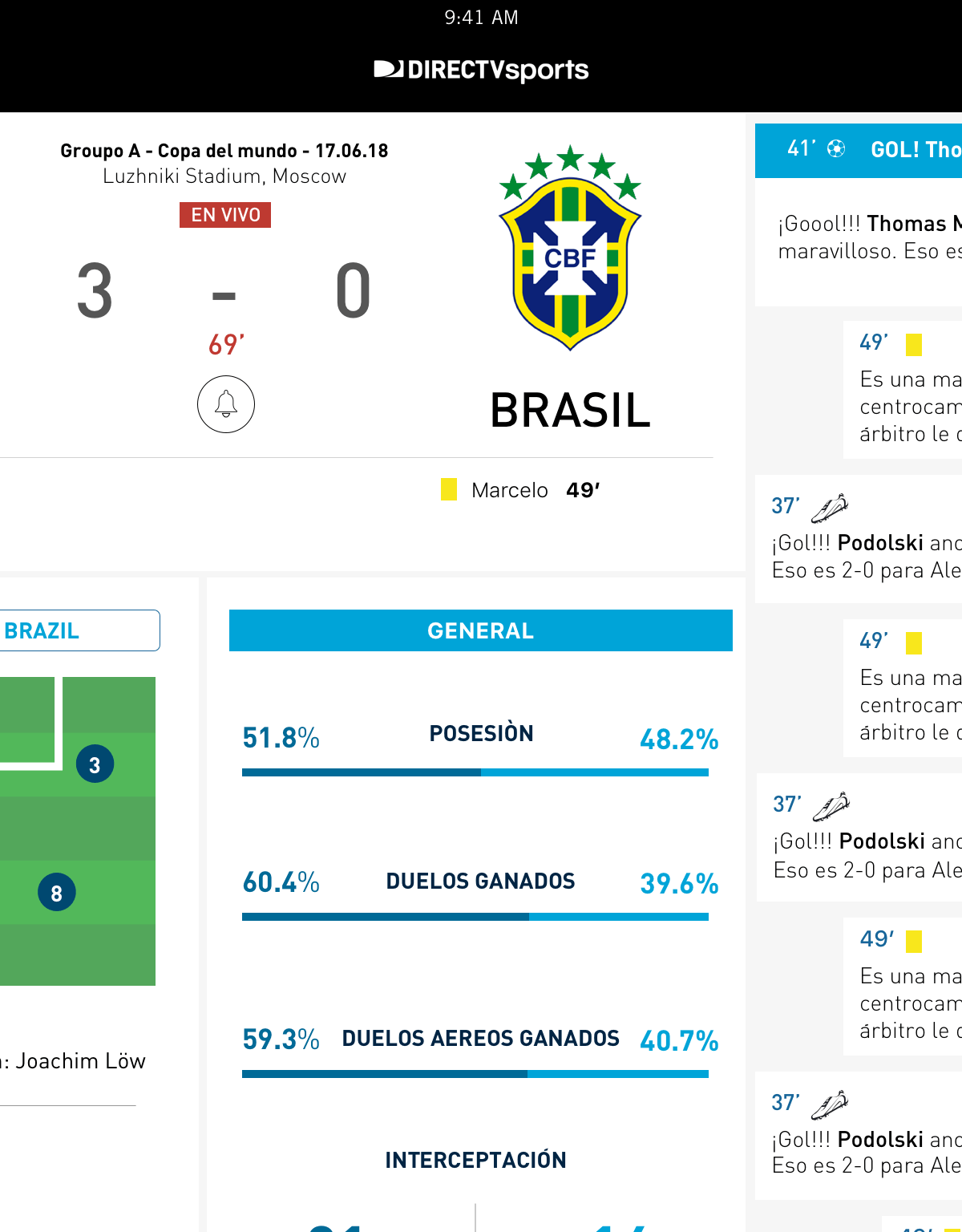 “Cualquier cliente nuevo o antiguo sólo tendrá que registrarse en la app de DIRECTV o en la web y crear una clave. Y, con este mismo usuario y clave, va a poder descargar la nueva app creada exclusivamente para el Mundial y ver el contenido especial que ofrece, con la posibilidad de conectarse en más de un dispositivo”, añade Vera.