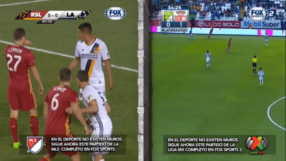 El pasado sábado 18 de marzo, la cadena transmitió en vivo y al mismo tiempo un partido de la Liga MX (León contra Toluca) y otro de la Liga MLS (Atlanta United contra L.A. Galaxy), juntos y en una misma pantalla, separados por una pared.