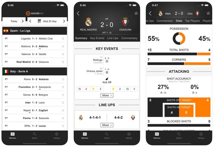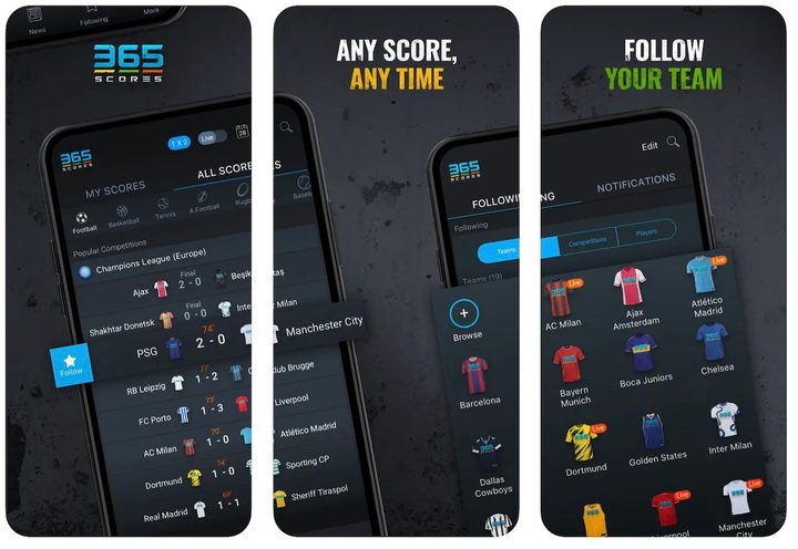 Si bien, esta aplicación ofrece cobertura de más de diez deportes, está enfocada particularmente en fútbol. De hecho, si uno lo desea puede elegir no ver la información de las otras actividades como tenis, automovilismo, hockey, básquetbol, etc. Con 365Score, uno puede escoger un equipo favorito para así recibir una completa cobertura en la previa de cada encuentro, como posibles alineaciones, noticias relacionadas y detalles sobre el estado de cada jugador. También, esta aplicación ofrece un atractivo sistema de narración de partidos con datos y gráficos para que la sensación sea similar a cuando vemos un encuentro por la televisión. Ah, y cuenta con una interface espacial para Apple Watch
