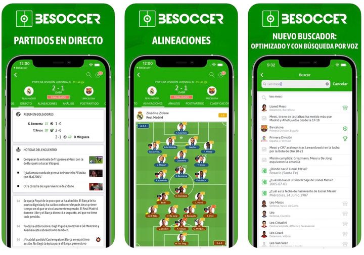Otra de las aplicaciones más populares del momento. Ofrece un diseño simple, pero atractivo, que muchos aficionados al fútbol sabrán apreciar. Al comenzar a utilizar la app, se le pide al usuario escoger un equipo y una liga favorita, para que así la experiencia de uso sea más personalizada. Otro de sus puntos fuertes es que en cada partido se informa en qué canal de televisión será transmitido, lo que siempre es bienvenido por todos los seguidores. Junto con esto, también aparece una completa agenda de partidos para que podamos organizarnos y una sección de noticias para que estemos al tanto de las últimas novedades en torno a este deporte. También se informa constantemente sobre el estado de los futbolistas, especialmente sus lesiones y estadísticas más relevantes, además de permitir comparar a distintos jugadores para conocer el nivel de cada uno de ellos. Descarga BeSoccer para Android. Descarga BeSoccer para iOS.
