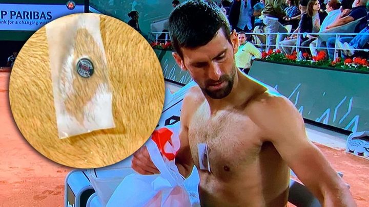 Pero Djokovic no llamó la atención tras el partido por algún punto especial, sino más bien por un chip que lucía pegado con cinta adhesiva en su pecho.