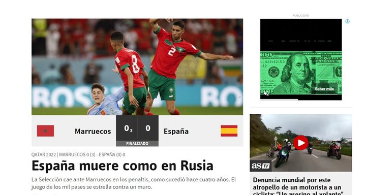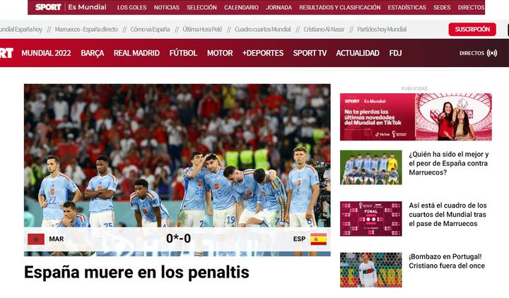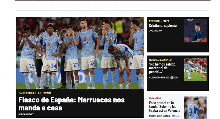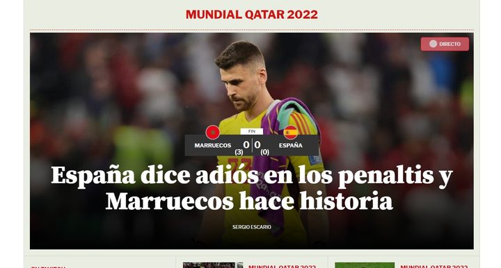 Por su parte, Mundo Deportivo de Cataluña manifestó que, “Tremendo lo de España, que no ha sido capaz de convertir ninguno de los tres penaltis que ha lanzado y cae nuevamente en octavos de final. Fueron mejores los de Luis Enrique durante los 90 minutos e incluso tuvieron un palo en el último minuto de la prórroga, pero… Estamos fuera. Bono, actual trofeo Zamora del campeonato español, se convierte en el nuevo héroe nacional de Marruecos“.