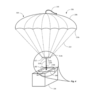 La Oficina de Patentes y Marcas Registradas de Estados Unidos publicó los documentos con los detalles de la invención que describen un sistema que incluye un respaldo autoadhesivo, varios cordones, el paracaídas y una cubierta que se desprende. Los cordones pueden incluir amortiguadores para reducir la posibilidad de daño del paquete.