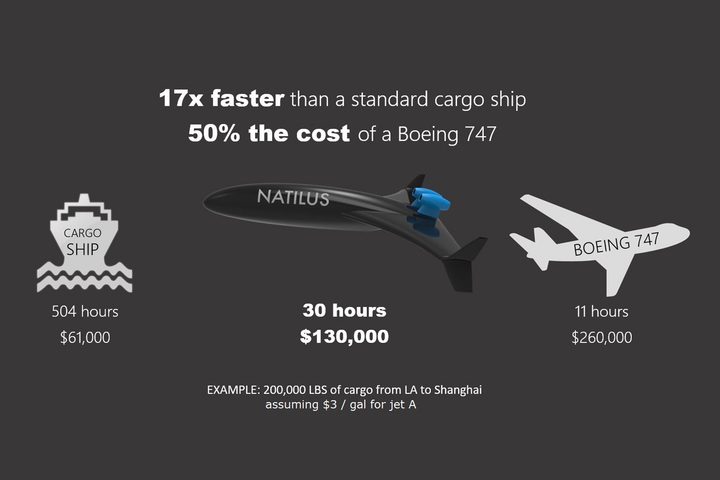 Sin embargo, sus creadores dicen que el dron de Natilus tardaría 30 horas y costaría $130.000 dólares en realizar la misma labor, acelerando el tiempo que tardan las embarcaciones de carga y reduciendo los costos operacionales para el transporte aéreo. Es decir, sería 17 veces más rápido que un barco, y a un 50% del costo de un avión.