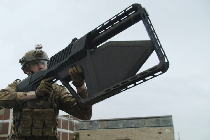 Derribar o desactivar drones enemigos desde tierra con un disparo certero de ondas de radiofrecuencia es una de las funciones que ofrece el rifle DroneGun MkIII fabricado por la empresa australiana DroneShield.