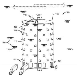 Esta patente es un poco más viable que la muy utópica patente donde hay un centro de distribución que levita, con aeropuerto de drones incorporado.