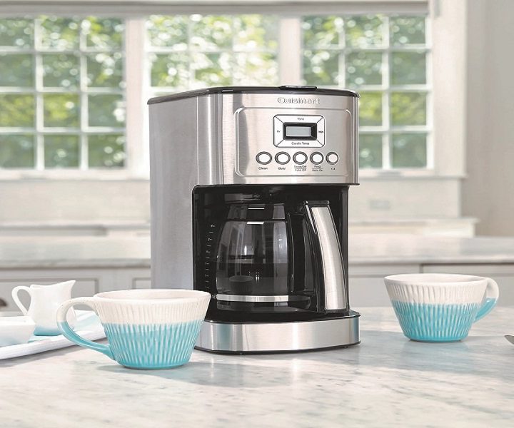 La cafetera Cuisinart DCC-3200 de 14 tazas, supera a su predecesor de tantas maneras que ese precio razonable es difícil de creer. Posee un filtro de agua y otro permanente de tono dorado que te aseguran un vertido limpio e incluso te permite pausar la preparación para servirte una taza rápida, en caso de que tengas poco tiempo.