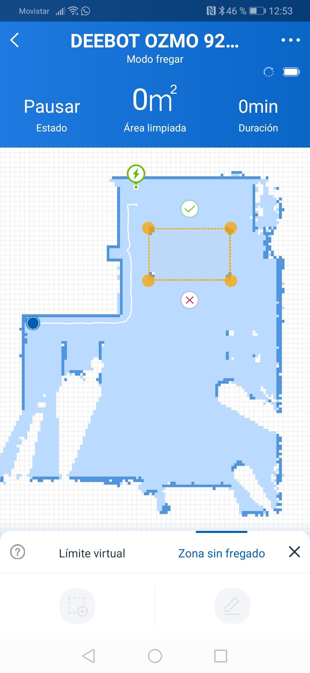 Nos han encantado las posibilidades de personalización para que limpie unas zonas sí y otras no. Existen dos posibilidades, una que es que puedes seleccionar las habitaciones concretas en las que necesites limpiar. Otra, delimitar una zona a la que no quieres que acceda. Por ejemplo, una alfombra en el modo fregado, o un espacio con macetas en el suelo.