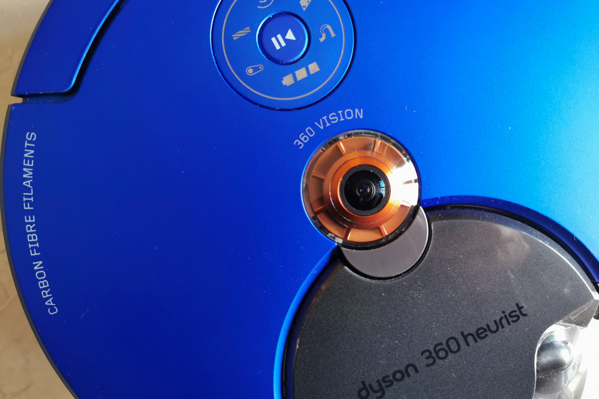 Su aspecto tampoco se asemeja al de sus competidores, sino que mantiene la estética de Dyson y parece sacado de una película del universo Star Wars. Combina un cuerpo de plástico de color azul con un depósito y una base en plástico transparente, detalles en rojo, gris y negro y una cámara de navegación de color cobre situada en la parte de arriba justo en el centro. Con este aspecto singular, cuando se pone en marcha, podría pasar por un compañero o la mascota de los adorables C-3PO y R2-D2. Todos los materiales se ven de mucha calidad.
