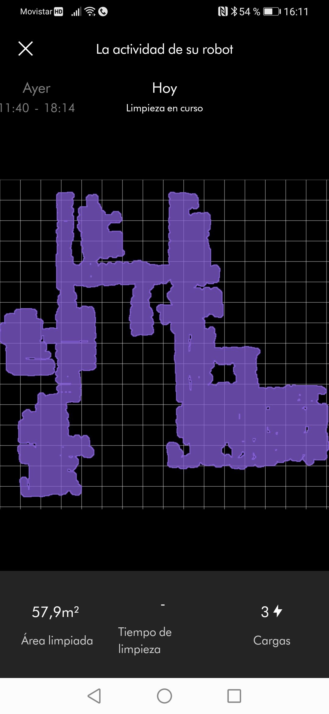 Esa forma de recorrer las estancias añade tiempo de aspirado, es decir, que tarda más en aspirar que otros robots aspiradores. Por ejemplo, el último modelo que hemos analizado anteriormente, Roborock S6 Pure, es capaz de limpiar un área de 77 metros cuadrados en 80 minutos y esta ha aspirado 46 metros cuadrados en 77 minutos (en el modo silencioso). Esto puede ser un inconveniente si estás en casa mientras limpia porque tal vez no complete el aspirado y tenga que volver a salir de nuevo a terminarlo. Si no estás en casa mientras limpia, entonces tal vez no te importe que tarde más y deba volver a salir después de cargarse para acabar de aspirar.