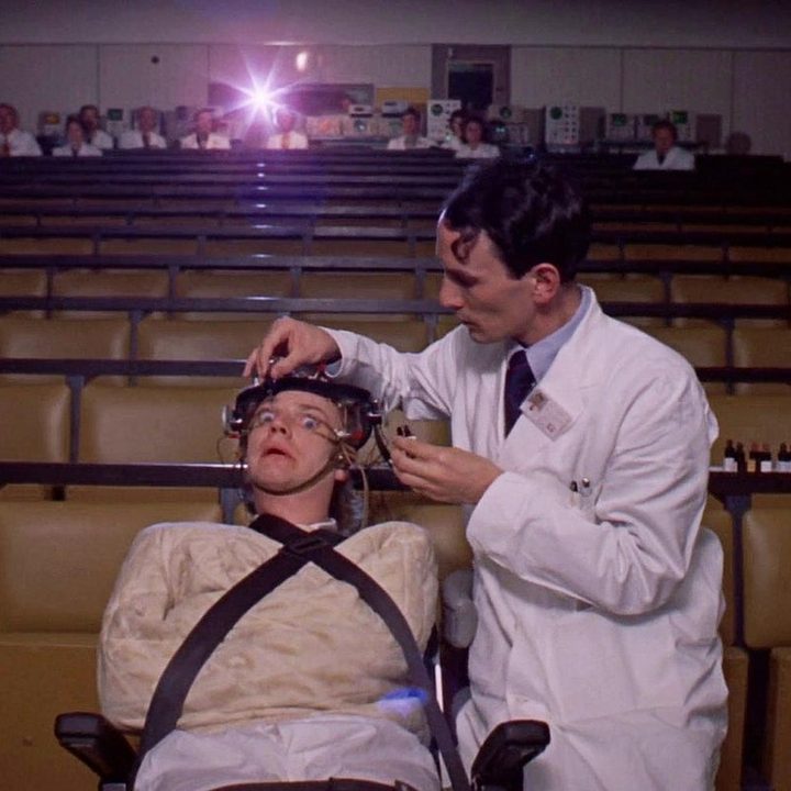 Sin embargo, en una instancia arrestan a Alex y este se convierte en el conejillo de indias del estado, quien recibe un lavado de cerebro diseñado para hacer que se transforme en “alguien bueno”. Para ello, utilizan la técnica Ludovico, un tratamiento experimental que consiste en administrarles a los delincuentes una droga que los induce a tener nauseas al pensar en sexo o violencia.