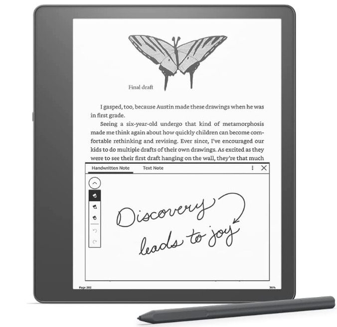 Si hay un dispositivo que no necesita hacer ningún match con otro dispositivo, pero sí contigo, es el nuevo Kindle Scribe: el primer Kindle para leer y escribir. Cuenta con la primera pantalla de 10.2”, 300 ppp, iluminación frontal, luz cálida ajustable, luz frontal autorregulable, carga por USB-C, una batería diseñada para durar meses y, su match integrado: un lápiz que emula la sensación de escribir en papel. Dispositivo diseñado para leer y tomar notas en millones de libros, añadir comentarios a los documentos, llevar un diario, y quién sabe, quizá sea hoy el día perfecto para usarlo y escribir esos poemas de amor que siempre llevas en la cabeza.