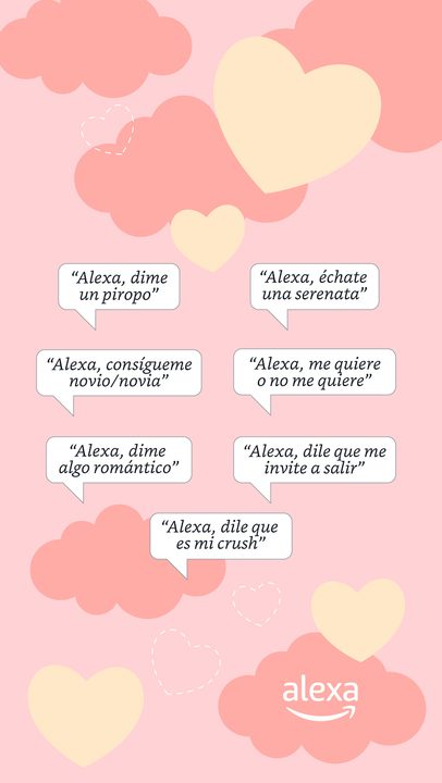 Llegó febrero, el mes del amor y la amistad, y Alexa se suma a la celebración de San Valentín para enamorar —un poco más— a sus clientes reproduciendo sus canciones de amor favoritas, los poemas más inspiradores e incluso contándoles chistes a aquellos que quieren disfrutar y reírse en compañía de Cupido.