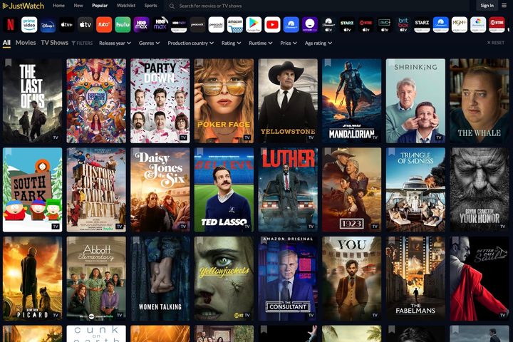 Respecto a plataformas por suscripción, muestra las producciones disponibles en Netflix, Prime Video, Disney+, Apple TV+, fuboTV, Hulu, HBO Max, Peacock, Paramount+ y Mubi, entre otras. Con relación a las gratuitas, es posible desplegar las realizaciones listas en The Roku Channel, Vudu, PBS, Comedy Central, Crackle, Pluto TV, ViX, Vice TV, Rakuten Wiki, Plex y Public Domain Movies, entre otras.