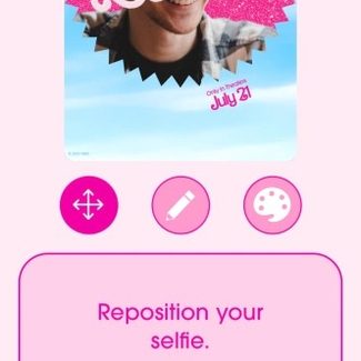 Paso 5: ¡Ahora es el momento de personalizar tu selfie de póster de Barbie! Toca el ícono de la flecha y usa los botones a continuación para ajustar la posición y el tamaño de su selfie.