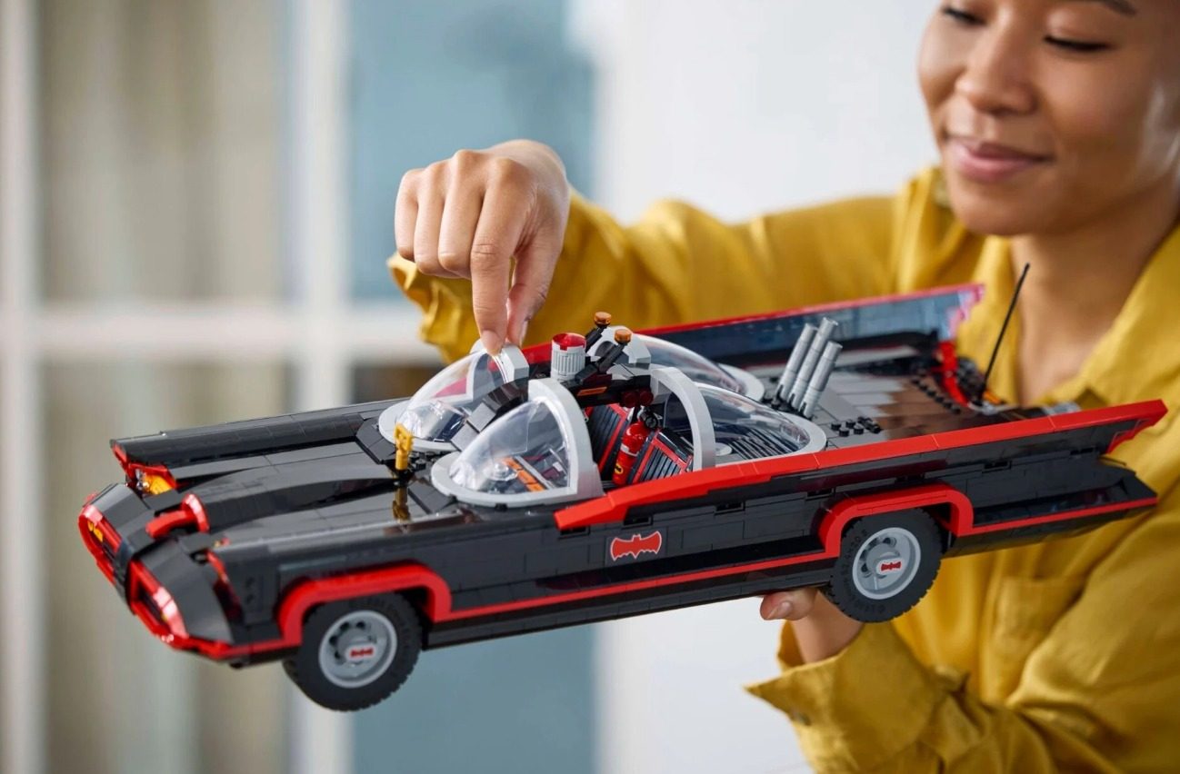 Es una nueva réplica de 1.822 piezas del clásico Batimóvil de los años 60. El modelo hace un trabajo fantástico al usar su escala más grande para capturar las elegantes líneas y curvas del vehículo original, y pequeñas características, como un interior completamente detallado para los lados del automóvil de Batman y Robin, y un maletero que se abre.