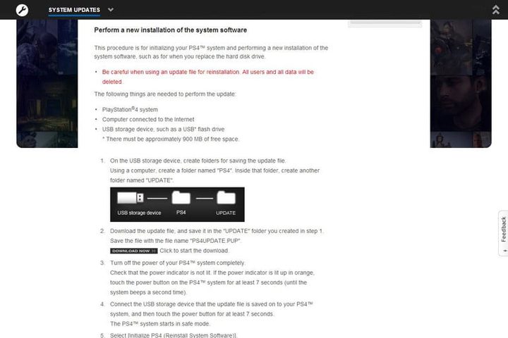 Con una computadora, descarga el último archivo de actualización del sistema operativo PS4 yendo al sitio de Sony y haciendo clic en el enlace «Descargar ahora». Esto asegurará que obtengas la última versión.
