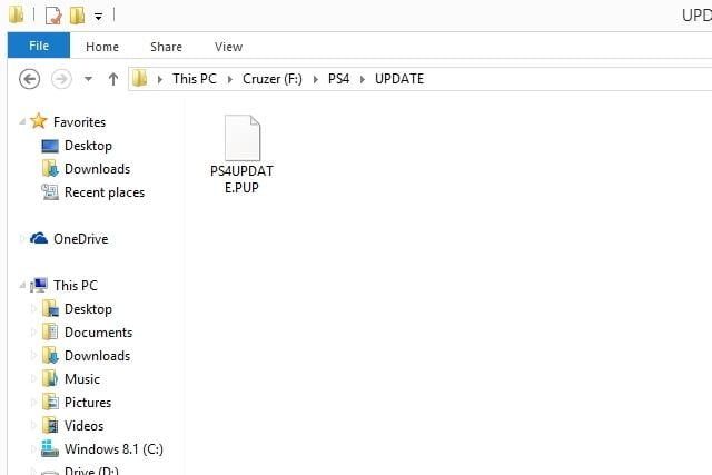 Una vez que termines de descargar el archivo de actualización del sistema operativo PS4 (que se llama PS4UPDATE.PUP), arrástralo a tu unidad flash y colócalo en la carpeta ACTUALIZAR. Recuerda: la carpeta ACTUALIZACIÓN debe estar dentro de la carpeta PS4 en tu unidad flash para que este proceso funcione.