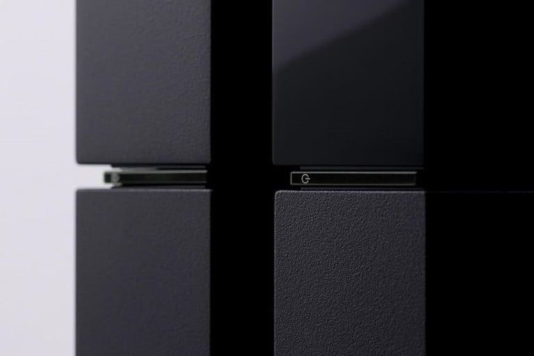 Coloca la PlayStation 4 sobre una superficie segura y presiona hacia abajo en el lado brillante y negro del panel superior. Con la parte frontal del sistema mirando hacia ti, desliza el panel hacia la izquierda. Debe sacarse sin problemas, ya que no lleva tornillos.