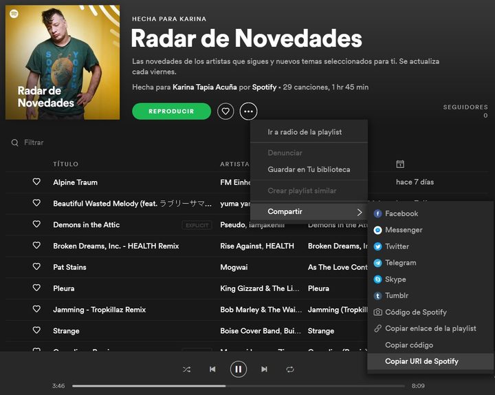 Comparte una playlist de Spotify desde la aplicación de escritorio