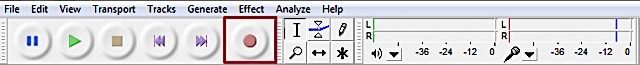 Paso 4: Graba. Haz clic en el botón Grabar y comienza tu grabación para comenzar a capturar el audio de la fuente seleccionada, ajustando los niveles de entrada para reducir la distorsión posterior cuando sea necesario. En Audacity, el botón de grabación está representado por un círculo rojo en la barra de herramientas de navegación.