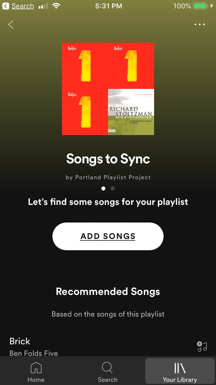 Cuando hayas creado una lista con las canciones que deseas sincronizar (aunque además puedes incluir música desde la biblioteca de Spotify), esta debe aparecer en tu dispositivo móvil en la pestaña Su biblioteca, en Listas de reproducción.
