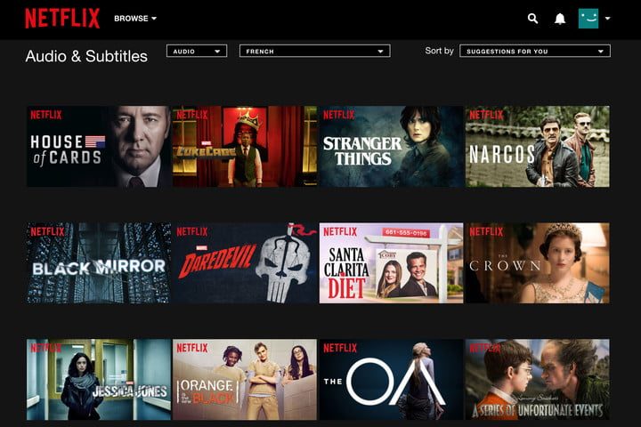 Si vas a la sección Detalles de cualquier serie, puedes ver una selección de idiomas diferentes para los subtítulos. Haz clic en un enlace para un idioma determinado, y llegarás a una página con todas las series y películas disponibles en ese idioma. A continuación, puede ordenar esas listas por sugerencias, calificación y de muchas otras formas interesantes.