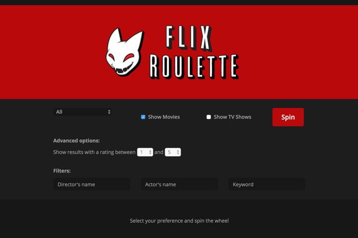 Netflix Roulette es un sitio independiente que te permite ver una película o un episodio al azar. Pero para aquellos que no buscan algo completamente al azar pueden ajustar sus opciones viendo películas con una ventana de clasificación, director o nombre de actor o palabra clave determinada.