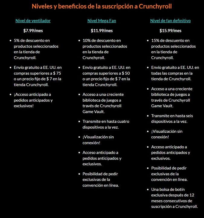 Crunchyroll anunció este 1 de mayo que está actualizando los precios de sus niveles de suscripción Mega Fan y Ultimate Fan en países seleccionados, el primer cambio de precios de la plataforma desde 2019, lo que refleja la inversión de la compañía en más anime, servicios adicionales como música y juegos, y beneficios adicionales para los suscriptores.