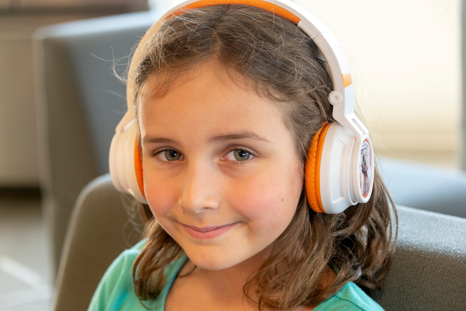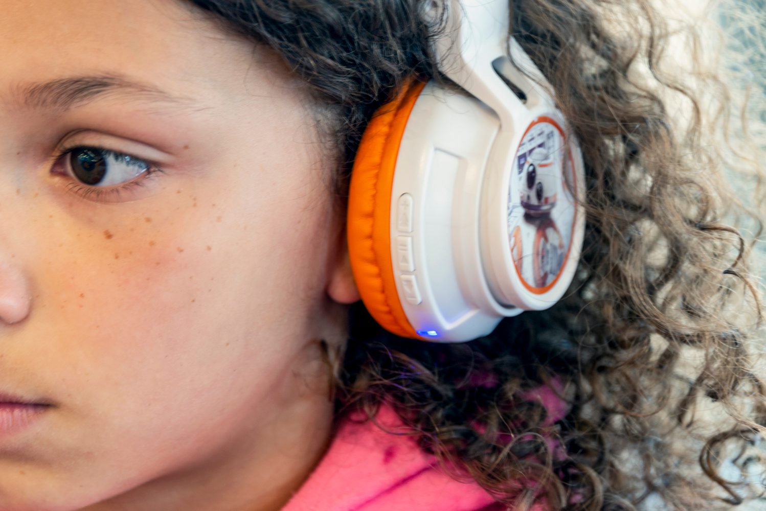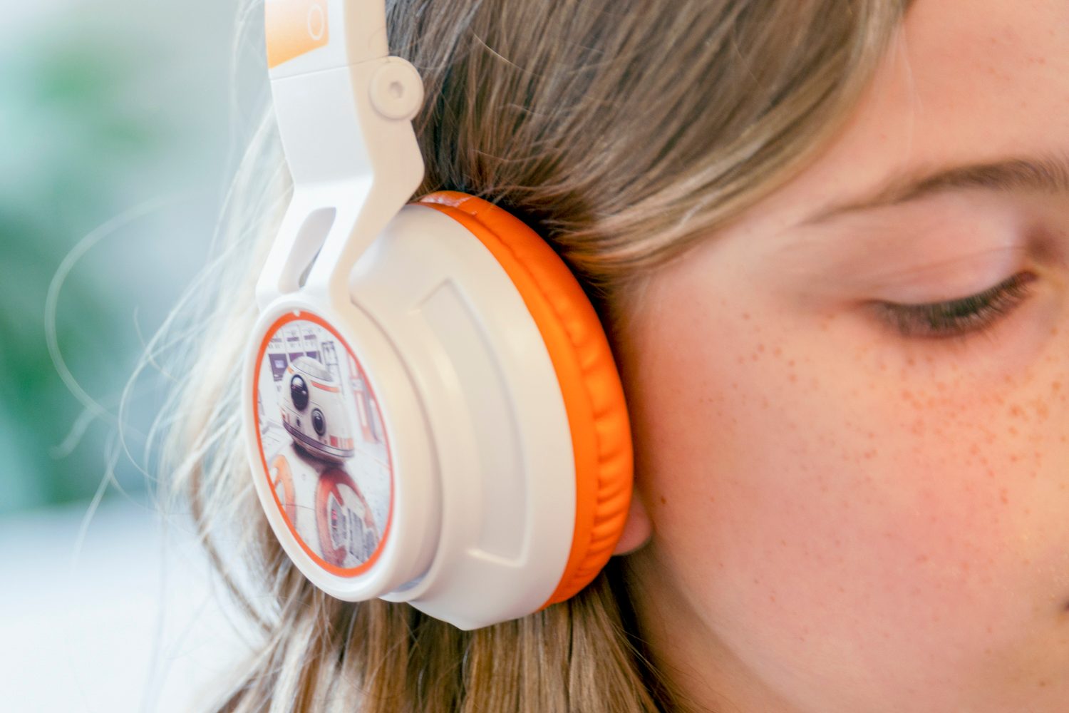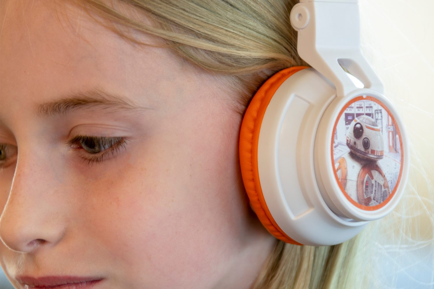 Si tu hijo o tu hija es otro fan de Star Wars, seguro que le encantarán estos audífonos/auriculares, que combinan los colores blanco y naranja con motivos que recuerdan al personaje BB-8 de la saga.