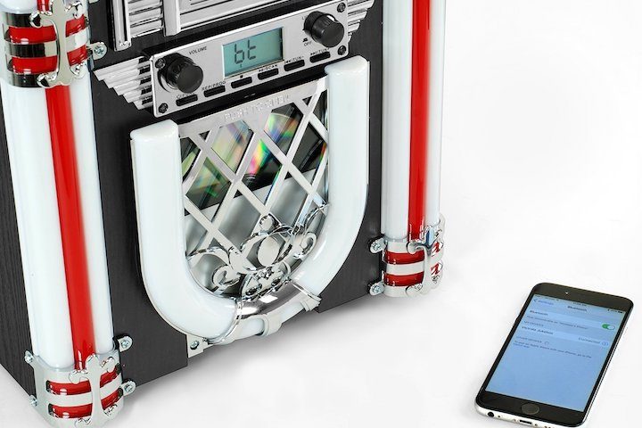 ¿Quieres rocanrolear en tu escritorio como si fuese la década de los ‘50s? Este Jukebox de 15 pulgadas de alto tiene todo lo que necesitas para hacer precisamente eso. Con un reproductor de CD, radio FM, conectividad Bluetooth y luces LED que cambian de color, este accesorio de escritorio es una hermosa mezcla de lo mejor de antes con lo bueno de hoy.