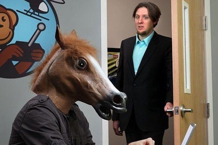 ¿Te identificas con un caballo, dada la fuerza y tesón que aplicas a tu trabajo? Esta máscara de cabeza de caballo con los ojos abiertos es realista, hilarante y muy asequible (y bastante ridícula, pero bueno…). Si estás listo para liberar tu “caballo interior” al mundo, ya no tendrás que esperar más.