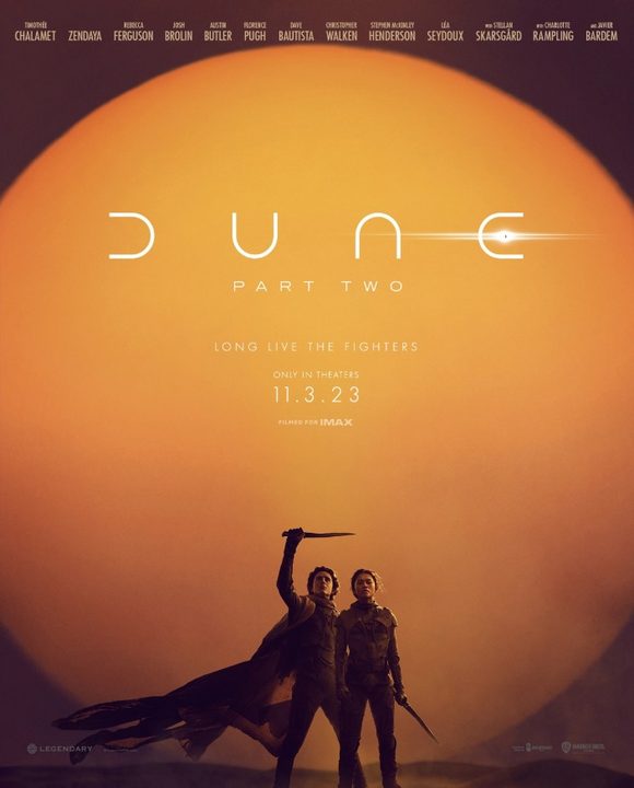 La película producida por Legendary ve a Timothée Chalamet, Zendaya, Rebecca Ferguson, Dave Bautista, Stellan Skargard, Josh Brolin, Javier Bardem y Charlotte Rampling regresar a la franquicia con los nuevos miembros del elenco Florence Pugh, Austin Butler, Lea Seydoux, Christopher Walken, Tim Blake Nelson y más. La película llegará al cine el 3 de noviembre.