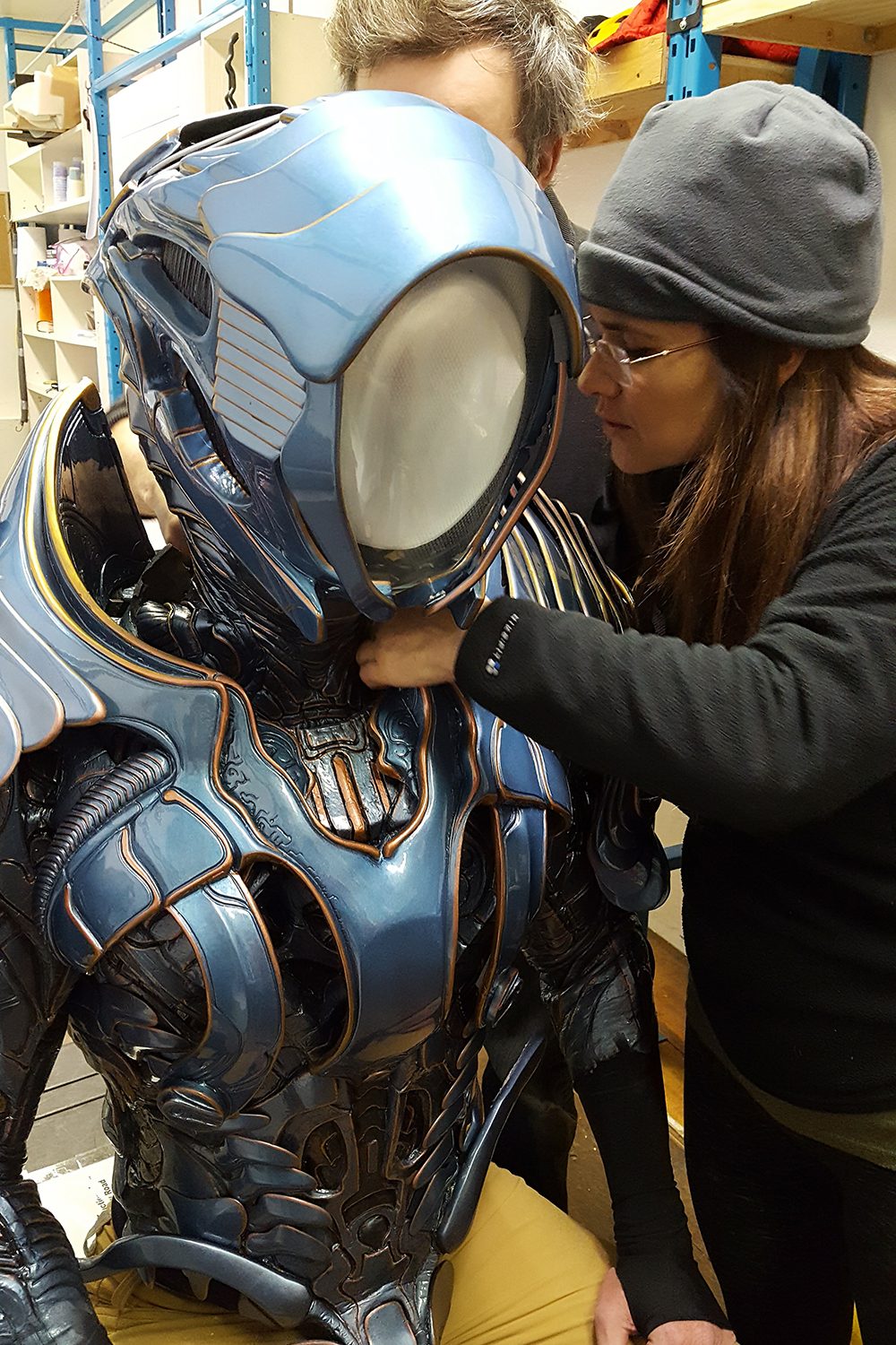 Mike Elizalde: En el caso de Lost in Space, diría que probablemente el 85 por ciento de la actuación de Robot que estás viendo proviene de lo que ocurre en el set. Hay algunas mejoras digitales esenciales en el traje que se agregan, principalmente creando un “espacio negativo” para que parezca que estás mirando a través de una máquina en lugar de mirar a una persona sólida dentro de un traje. Esa fue una gran decisión tomada por el equipo de producción, y también algo que sugerimos desde el principio. Descubrimos que la forma más efectiva de crear una ilusión es combinar lo digital y lo práctico donde tiene sentido.
