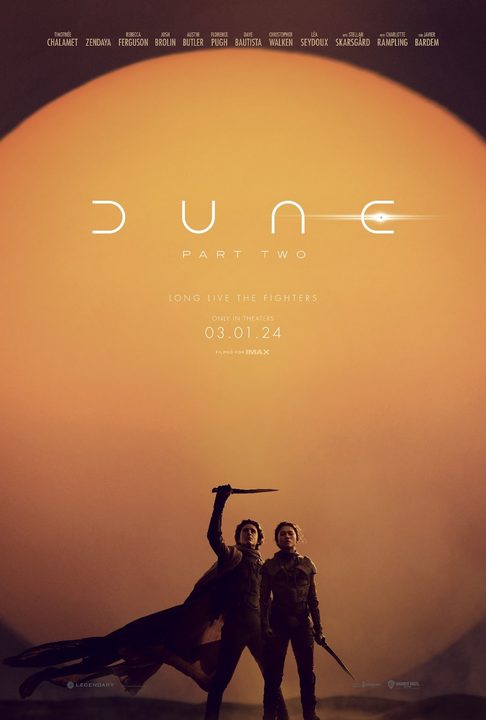 Para los fanáticos de historias épicas y aquellos que aprecian la cinematografía llega DUNE: PART TWO, dirigida por el galardonado cineasta Denis Villeneuve. DUNE: PART TWO es el próximo capítulo de la celebrada novela Dune de Frank Herbert y la saga continuará con un elenco estelar que incluye al nominado al Oscar Timothée Chalamet (Wonka, Call Me by Your Name), Zendaya (Spider-Man: No Way Home, Malcolm & Marie, Euphoria), el nominado al Oscar Austin Butler (Elvis, Once Upon A Time…In Hollywood), la nominada al Oscar Florence Pugh (Black Widow, Little Women), entre otros. Este nuevo capítulo de la historia explorará el viaje mítico de Paul Atreides mientras se une a Chani y los Fremen en un camino de venganza contra los conspiradores que destruyeron a su familia. Enfrentándose a una elección entre el amor de su vida y el destino del universo conocido, se esfuerza por evitar un futuro terrible que solo él puede prever.