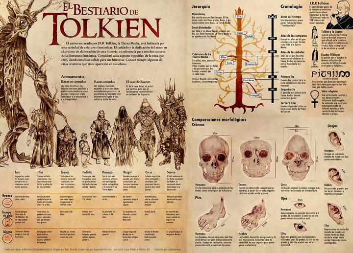 Por eso para todos los fanáticos de la Tierra Media, una diseñadora llamada Elena Fever ha traducido y adaptado una infografía preciosa sobre esas criaturas que habitan el imaginario de Tolkien.