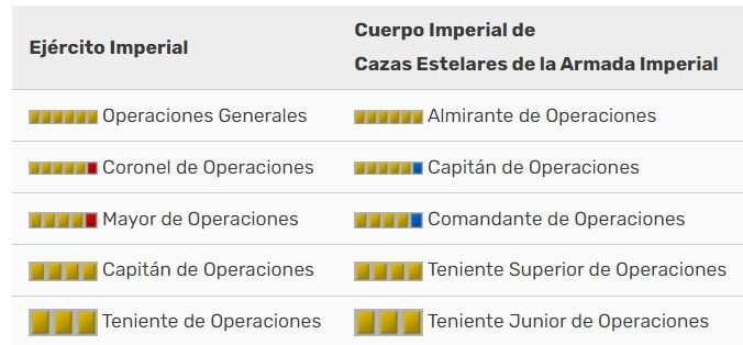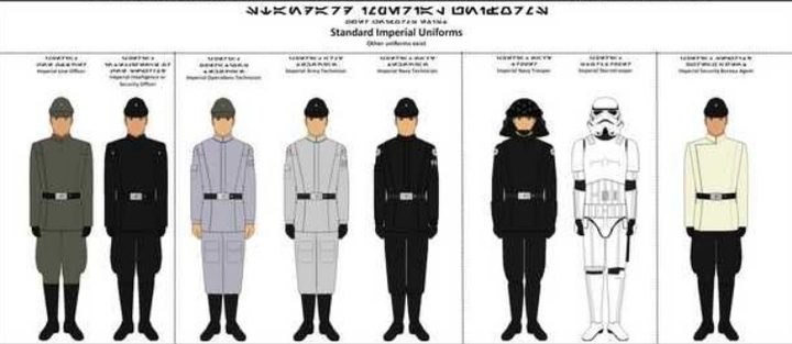 Según la descripción del fandom oficial del Imperio, existen además para los oficiales, según estos rangos, tres uniformes distintos: