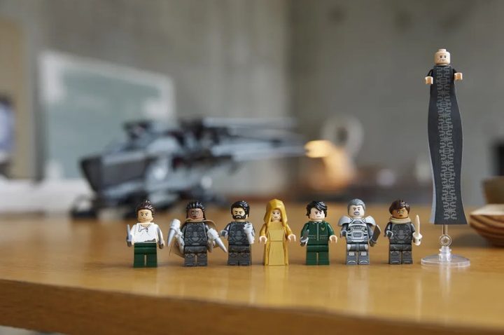 El set también viene con minifigs, naturalmente, que inmortalizan a Paul Atreides de Timothée Chalamet, Lady Jessica de Rebecca Ferguson, Gurney Halleck de Josh Brolin, Chani de Zendaya, Leto Atreides de Oscar Isaac, Liet Kynes de Sharon Duncon-Brewster y Duncan Idaho de Jason Momoa.