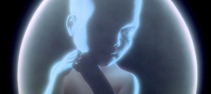Después de sobrevivir a la ira de la inteligencia artificial HAL en 2001: Una odisea del espacio, el astronauta Dave Bowman se encuentra a toda velocidad por el cosmos después de entrar en contacto con un monolito alienígena cerca de Júpiter. Luego termina en una elegante habitación de hotel, donde envejece rápidamente en su nuevo hogar antes de acostarse en su lecho de muerte frente al monolito. Sin embargo, luego se convierte en un feto brillante que mira a la Tierra desde el espacio exterior.