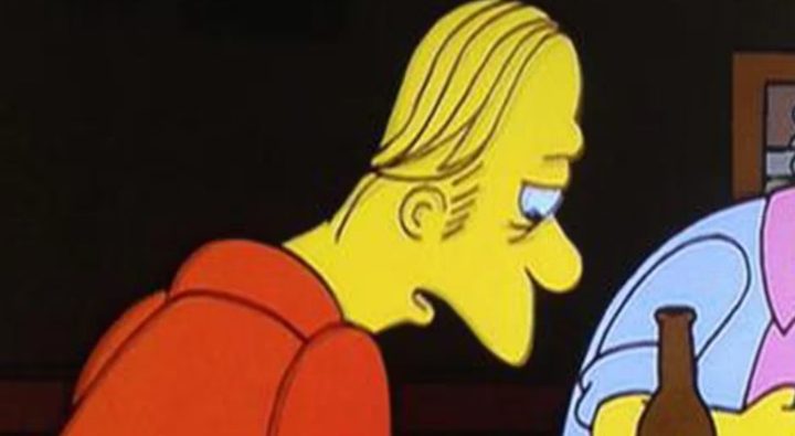 Se trata de Larry The Barfly, cuyo nombre completo se reveló como Lawrence Dalrymple, y cuya muerte fue anunciada en el capítulo 765 de la temporada 35 de Los Simpson.