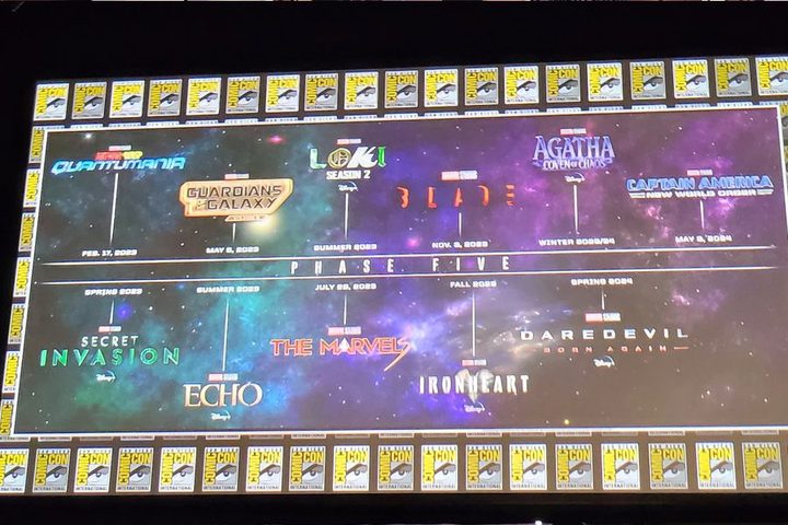 Este sábado 23 de julio en el salón H de la Comic-Con de San Diego 2022, se presentaron las fechas de los nuevos productos de Marvel para las fases 5 y 6 del MCU.
