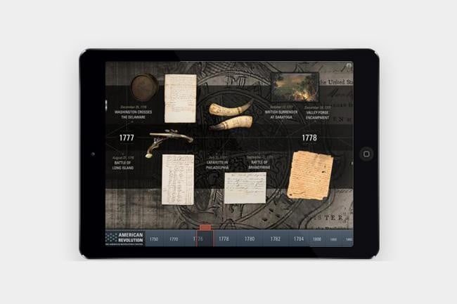 La aplicación American Revolution es una línea de tiempo interactiva que recorre todo lo que ocurrió en el siglo XVIII.