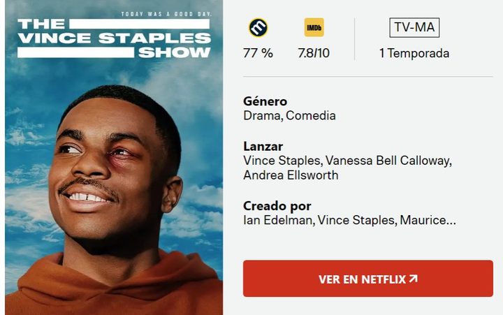El eslogan de The Vince Staples Show señala que su personaje principal es “un poco famoso y rico” gracias a su carrera como rapero, lo que puede generar comparaciones con Dave de FX. Pero esta serie en particular tiene un tono más cercano a Atlanta de Donald Glover o incluso a The Chris Isaak Show de hace dos décadas. Puede que no hayas oído hablar de él, pero Vince Staples es un rapero real que se interpreta a sí mismo en situaciones un poco exageradas y cómicas.